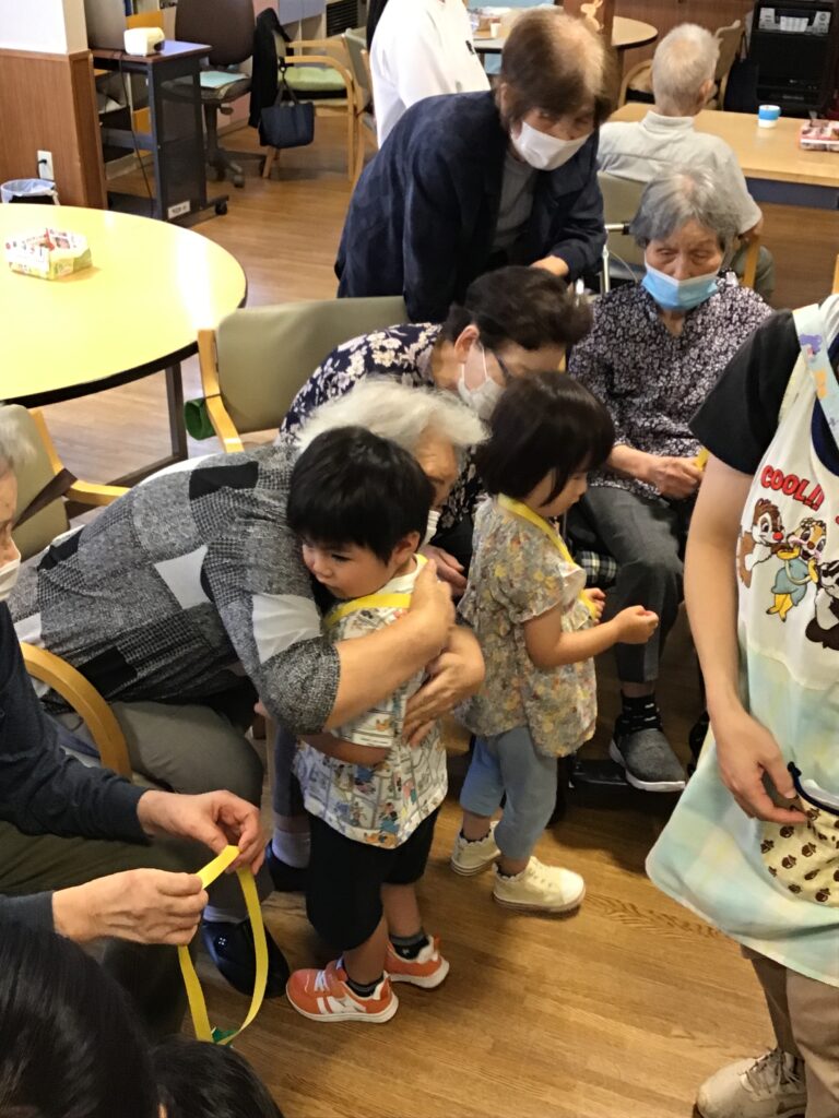 施設に入るとおじいちゃん・おばあちゃん達が待っていてくださいました。