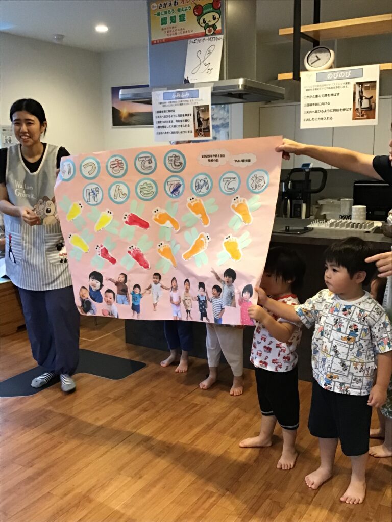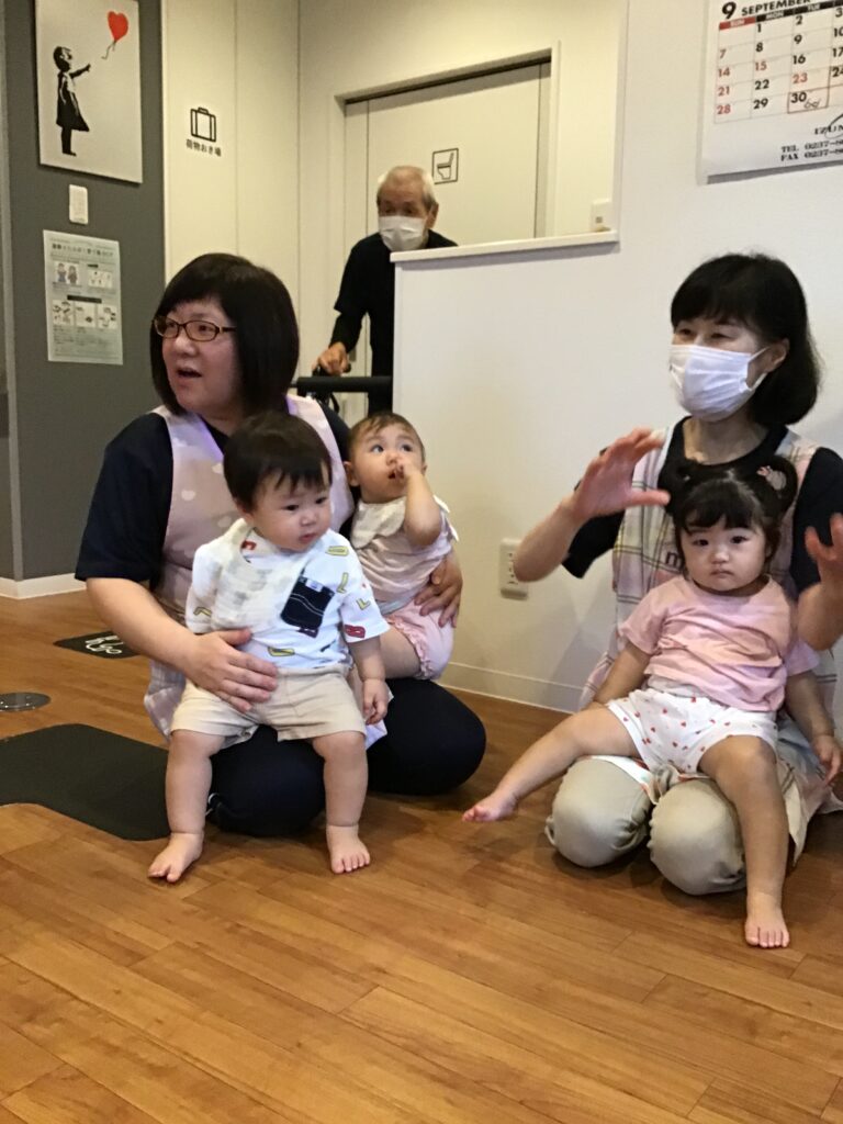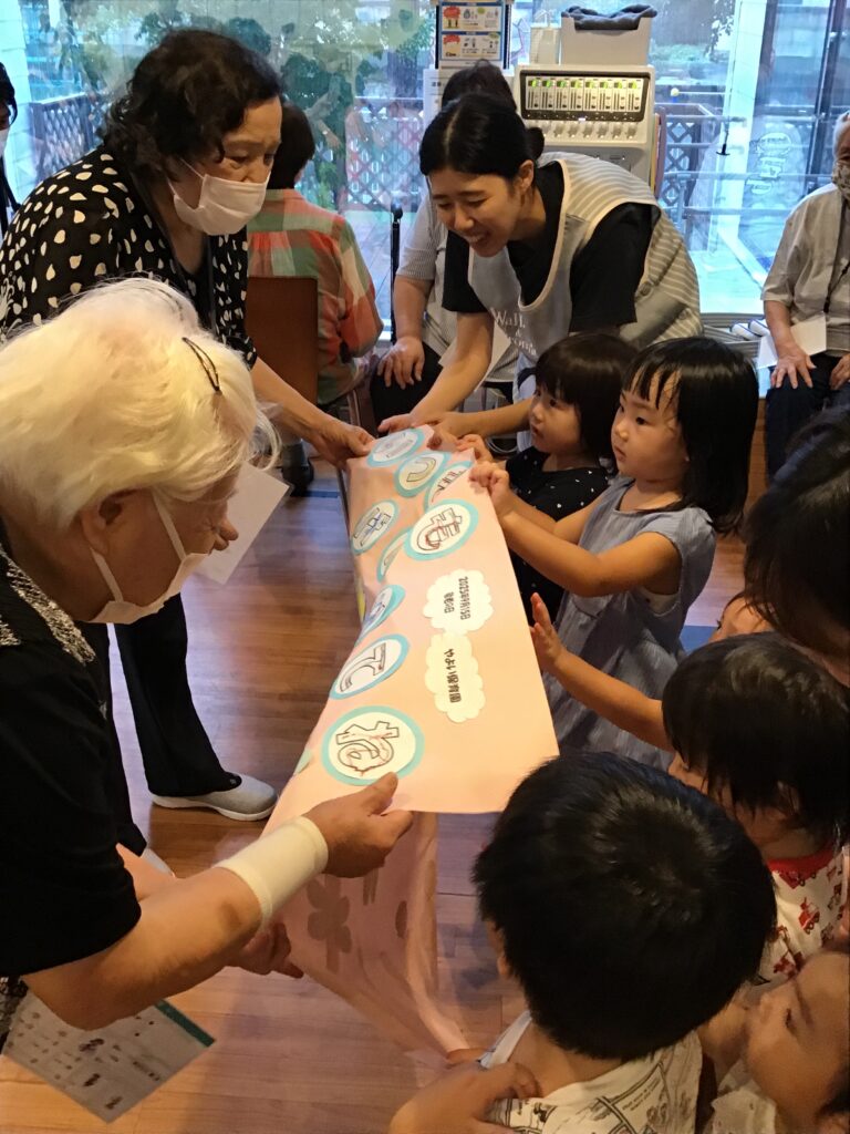 じゃんけんしたりタッチしたりおじいちゃんおばあちゃんと触れ合いを楽しんで満足して帰ってきました。