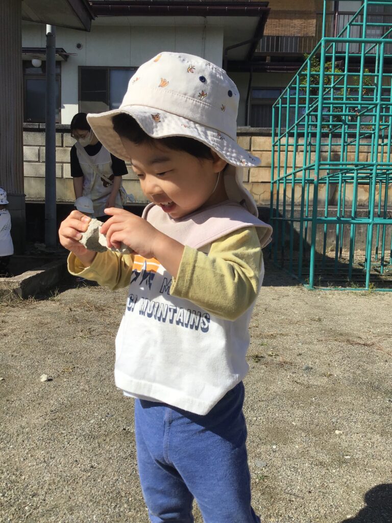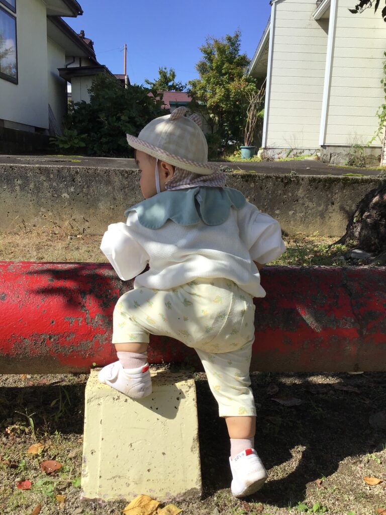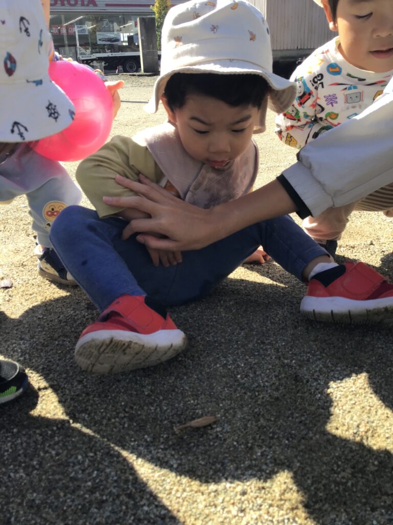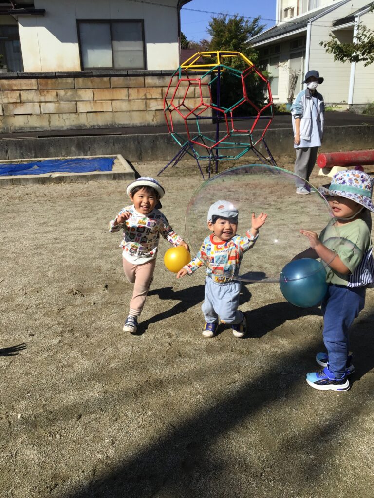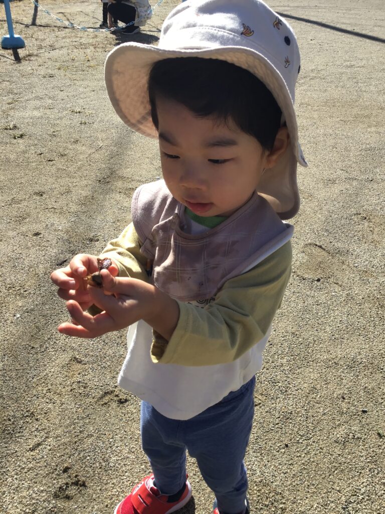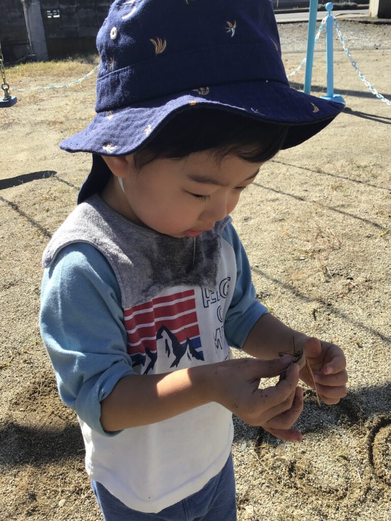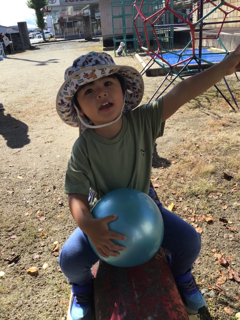 バッタを見つけて触ったりずっと見つめていたり、シャボン玉を追いかけたり、ボールを投げたり転がしたり、