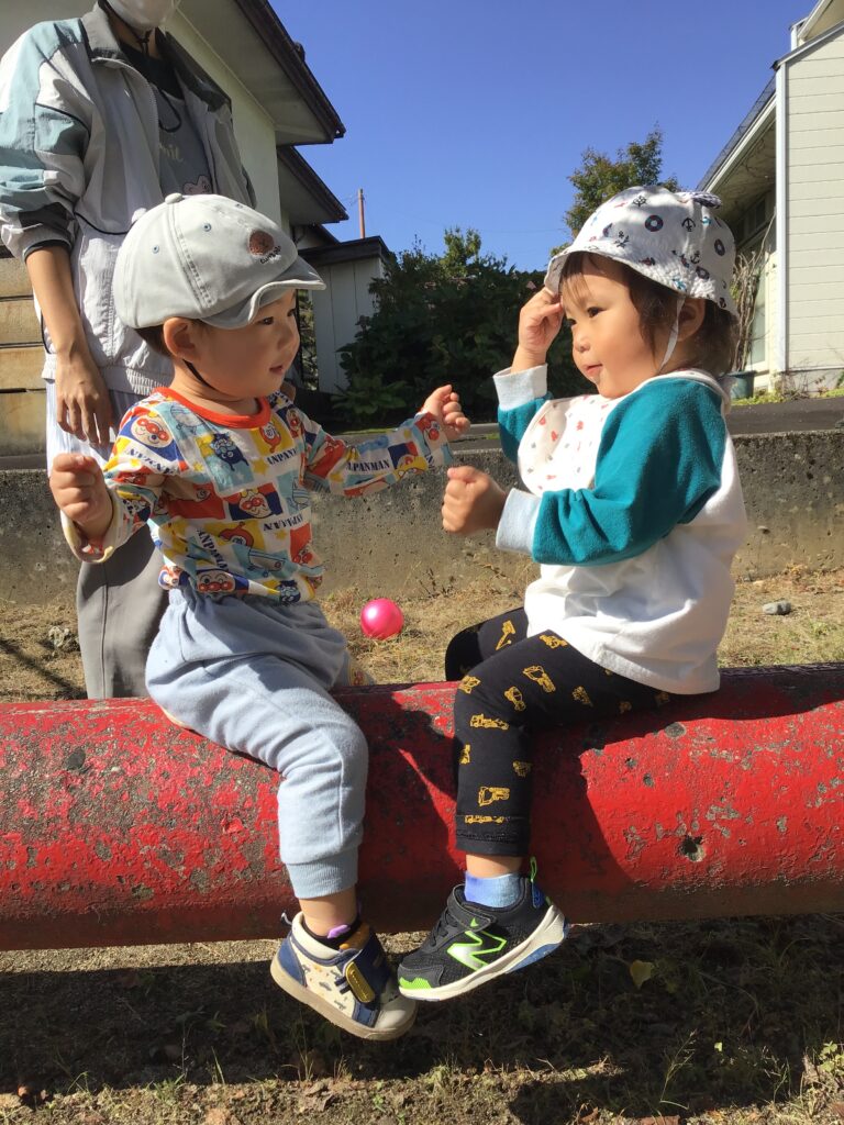 今日は爽やかな秋空。朝から「今日公園で遊べるの?」と聞きに来るぶどう組さん。