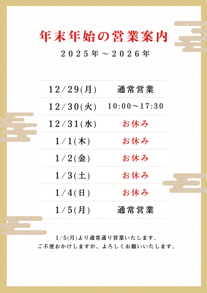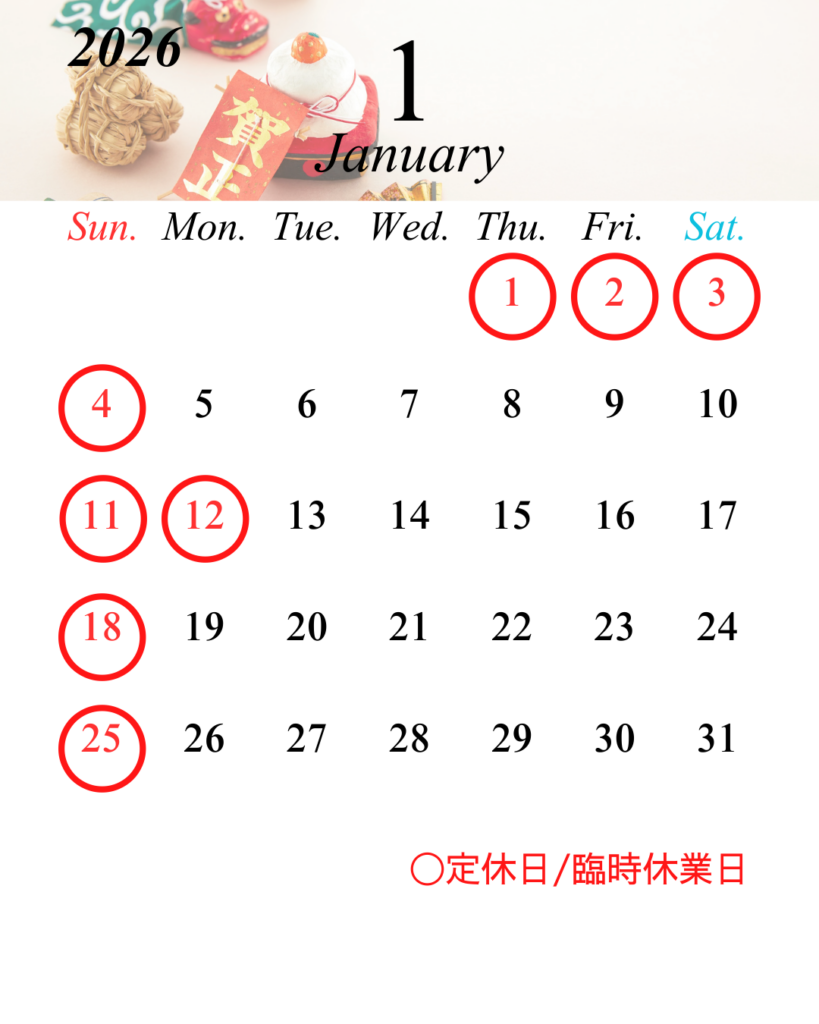2025.12.26 S.P.F.G. ROAD 年末年始&1月営業カレンダー! ご利用ご予約お待ちしております。 予約詳細につきましては、お気軽に店舗までお問い合わせください♪ ★見学・体験もお待ちしております♪ お気軽にお問い合わせください!