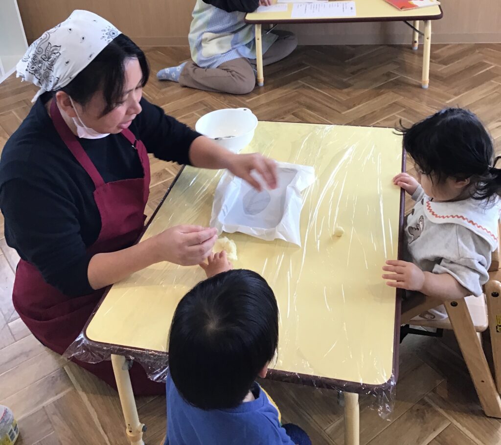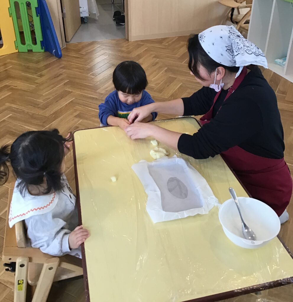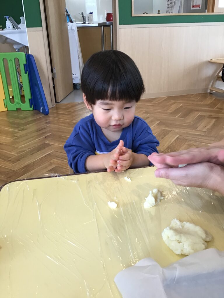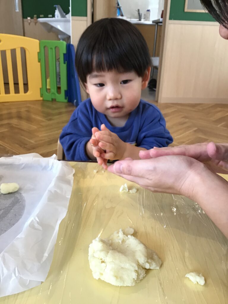 すると、栄養士さんからの提案で午後のおやつ「芋餅」を作ることに(#^^#)