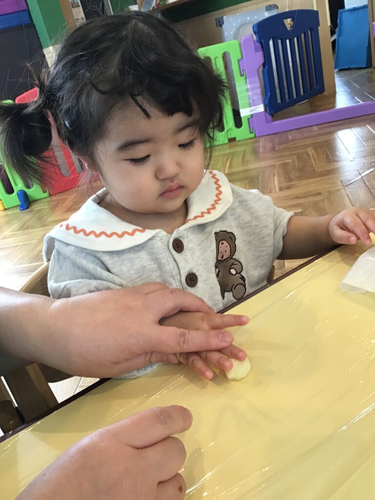 粘土遊びに慣れているおかげで丸めるのがとても上手(#^^#)細長いニョロニョロも作りました。