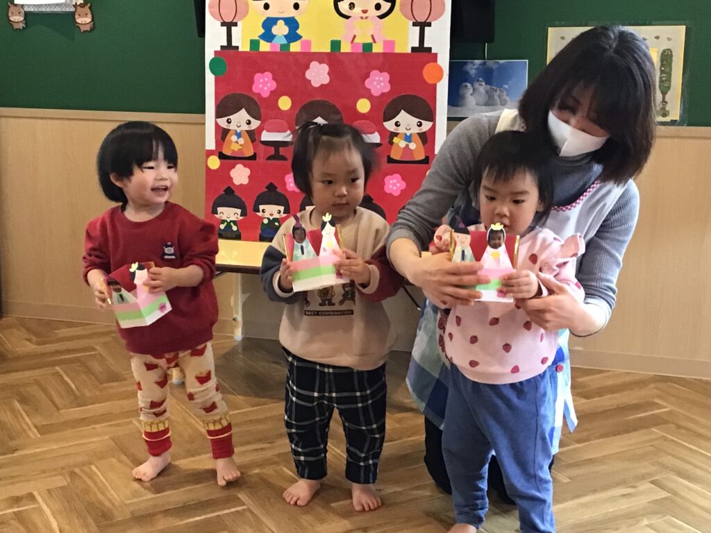 3月3日にひな祭りを行いました。楽しみにしていたひな祭り、朝からウキウキの子ども達です。